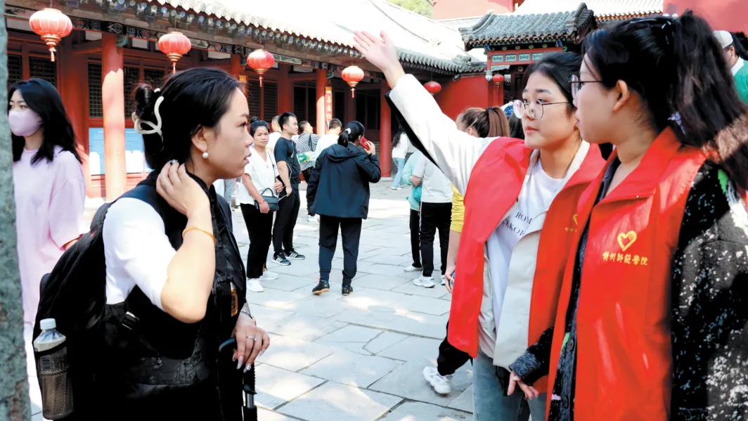 五台山风景名胜区志愿者积极开展文明实践活动,为游客提供全方位服务。忻州市文明办供图