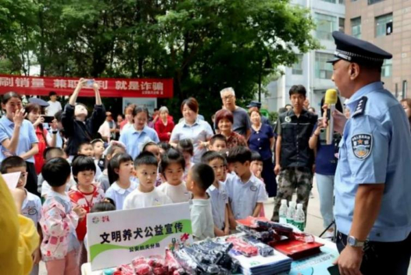 社区民警在文明养犬宣传活动中宣传相关法律知识。图片来源:长安区委宣传部