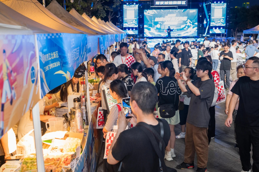 “点亮星夜 文明有吾”文明实践活动为居民带来文明新风和火热“苏超”。图片来源:江北新区葛塘街道