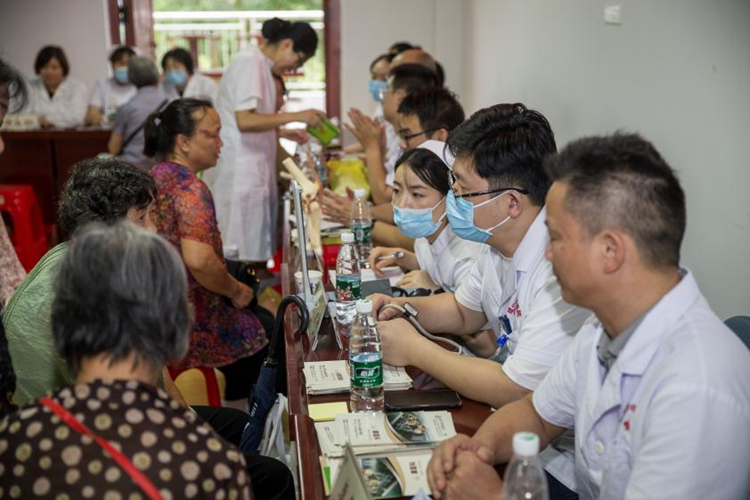 7月22日,湖北省咸宁市咸安区温泉街道南昌路社区组织的义诊活动。新华网 钟奕 摄