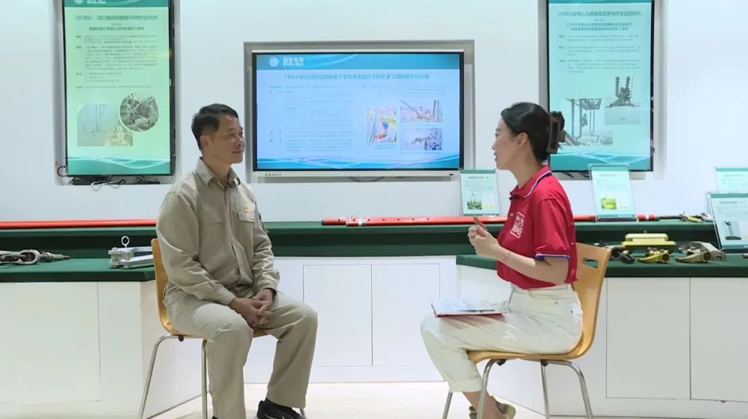 陈国信向记者介绍“利用无人机代替人工安装带电作业用挂线滑车”。王楠 摄