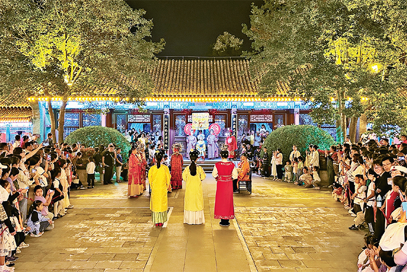 近年来,河北省大力推动文旅深度融合,深入实施文化惠民工程,全省文化产业快速发展,文化事业生机盎然。图为2023年10月1日,石家庄市正定县荣国府实景演出,生动还原了《红楼梦》中的经典片段,吸引众多游客驻足观看。 河北日报记者 张晓超/摄