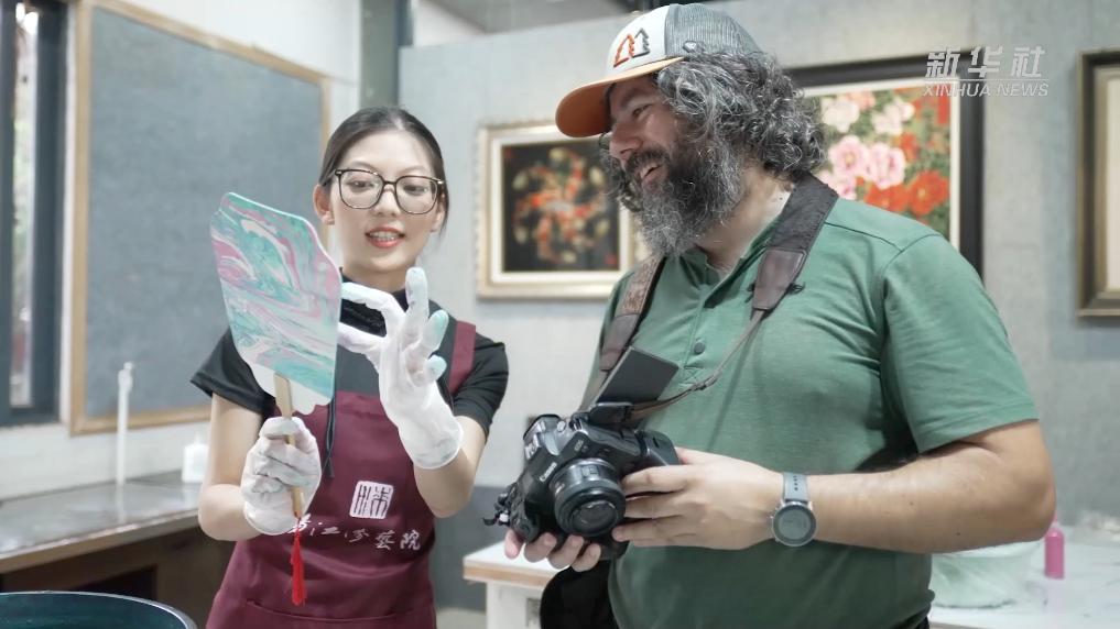 这风轻巧有韵,见证着当地文化非遗的活力传承。外媒参观者们在亲身体验中感受中华漆器、阳江风筝的魅力。