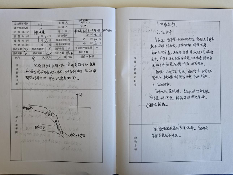 尼尔基路消防救援站消防员的“战评”记录。(图片由受访者提供)