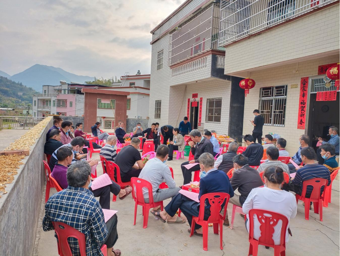 凤安镇回龙村在家门口的禾坪开展移风易俗宣讲活动。