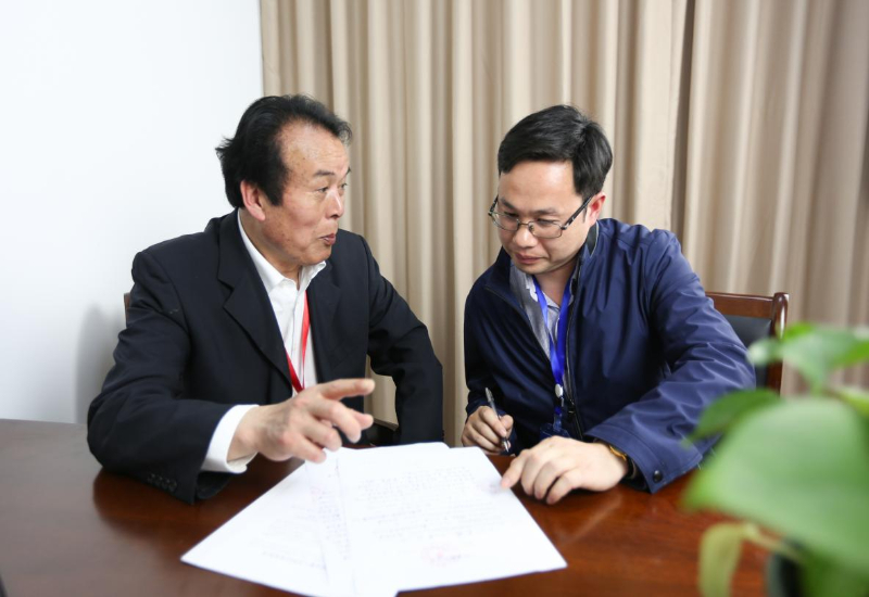 潘明杰在给“小潘”王立成讲授调解纠纷经验。宁波文明办供图(资料图)
