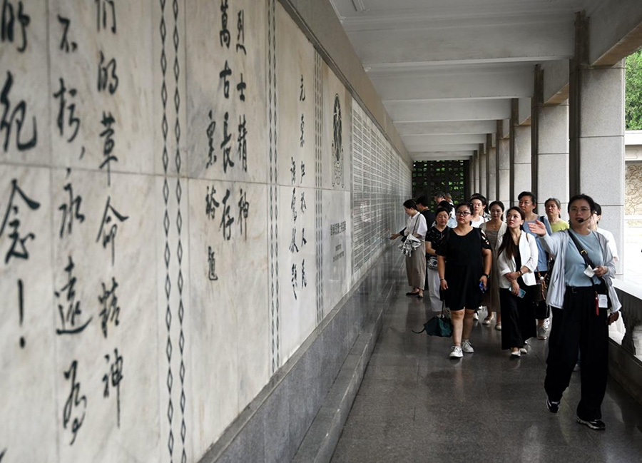 游客参观淮海战役烈士纪念塔两侧的回廊。刘冰 摄