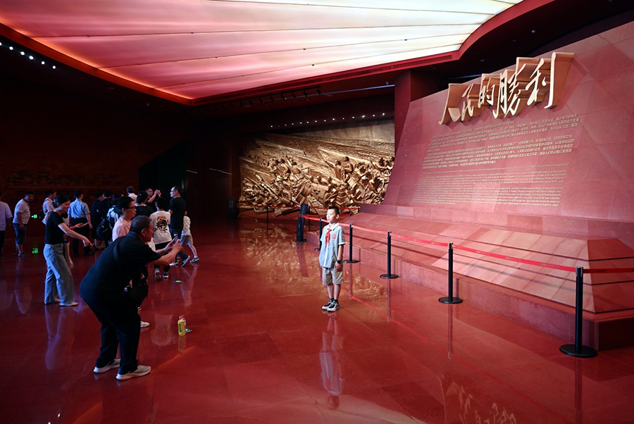 游客在淮海战役纪念馆序厅拍照留念。刘冰 摄