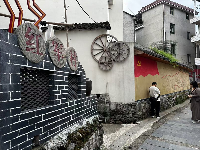 作为红色名村,南界首村充分依托自身红色资源优势,大力发展红色旅游和红色研学。精心把红军小路、思源广场、马氏宗祠、红色文化墙、万年台等红色景点巧妙串珠成线,打造出一条独具特色的红色旅游线路。游客们漫步在红军小路上,仿佛能感受到当年红军战士们的坚定步伐;站在思源广场上,心中涌起对革命先辈的敬仰之情;走进马氏宗祠,触摸历史的痕迹;欣赏红色文化墙,重温那段波澜壮阔的革命岁月;登上万年台,想象着曾经在这里上演的精彩演讲。红色发展在点亮“文明风尚”璀璨之光。旅游的过程中,让古村落焕发出勃勃生机。