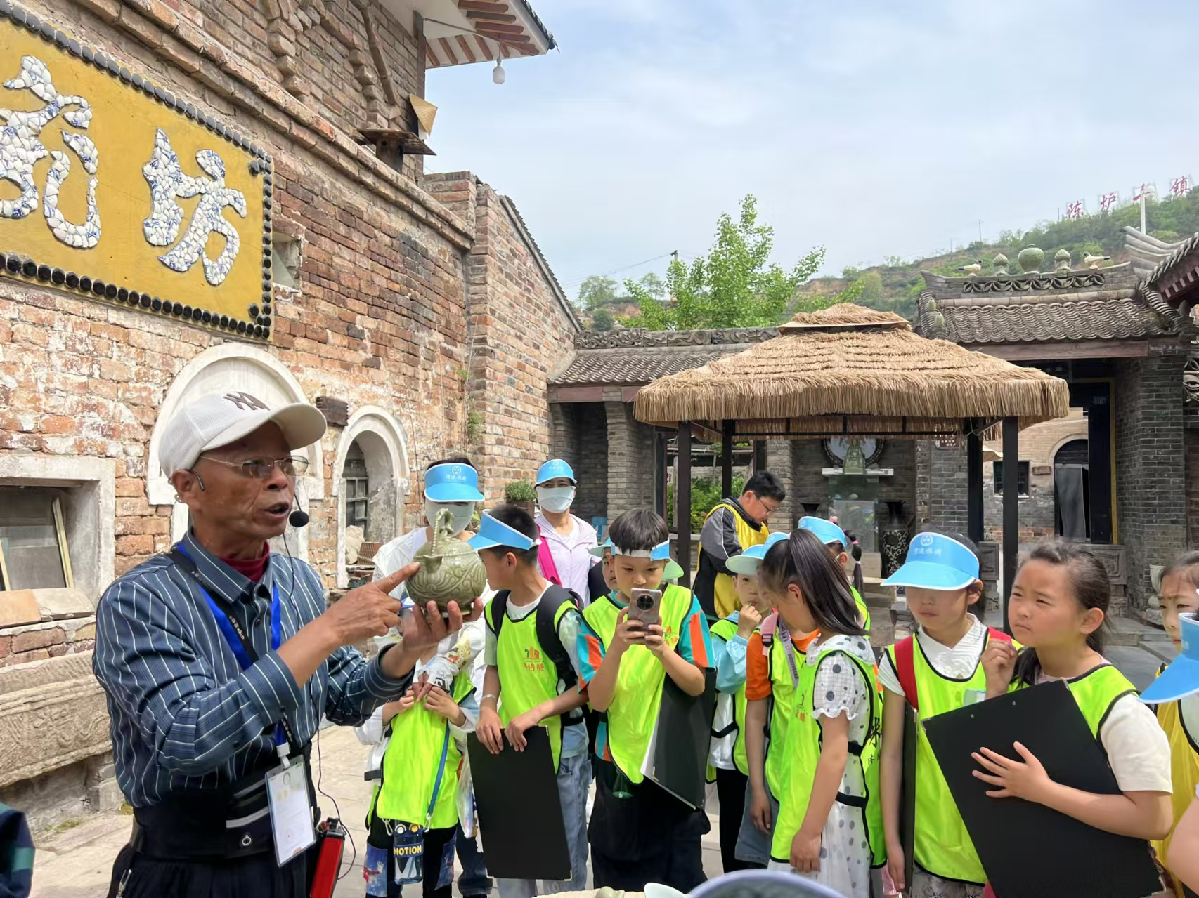 吴欢喜向游学的孩子们讲解耀瓷文化。受访者供图