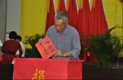 李振华向“振华奖学扶困基金会”捐款。淄博市文明办供图